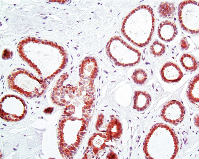FHIT是一种抑癌基因,其基因的易位和突变以及伴随的基因表达的紊乱与多种肿瘤的发生和发展密切相关,如肺、头颈部、乳腺、胃、胰腺等组织的恶性肿瘤。此抗体可以识别分子量为17kDa的FHIT蛋白,主要用于肿瘤方面的研究。