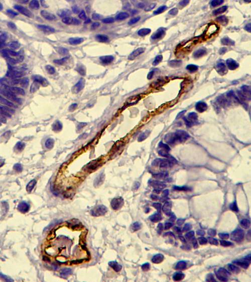 | 结肠,抗Factor VIII兔多克隆抗体 DAB显色 |