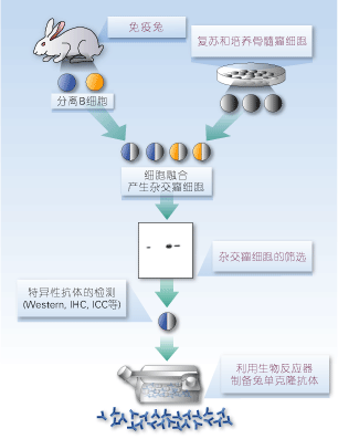 兔单克隆抗体技术简介: 单克隆抗体是来源于单一B细胞的抗体,这种抗体只能识别单一的抗原分子。70年代中期Khler和Milstein创造了单个鼠B细胞和骨髓瘤细胞融合的鼠杂交瘤细胞技术,并因此获得了1984年度诺贝尔医学奖。杂交瘤细胞(Hybridomas)可以产生无穷的单克隆抗体。1995年,Katherine Knight博士在美国芝加哥Loyola大学成功地从转基因兔中获得了骨髓瘤细胞(Plasmacytoma),开创了兔单克隆抗体技术并申请了专利。其后几年里,加州大学旧金山分校医学院Robert Pytela 博士和朱伟民将此技术进行了改进,使之能大量生产兔单克隆抗体。2003年,Epitomics公司买断了兔单克隆抗体技术专利,成功地开发了兔单克隆抗体用于科研、诊断和治疗的技术平台。深达公司在2006年获得了兔单抗专利产品的授权,在国内开发生产兔单抗免疫组化试剂系列产品。